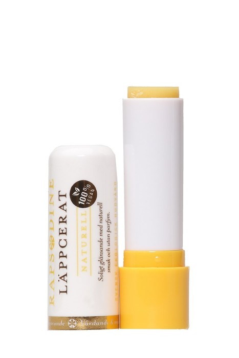 Rapsodine Läppcerat Naturell är ett vårdande och veganskt läppcerat baserat på rapsolja. Rapsodines läppcerat ger är gjort på en bas av ekologisk rapsolja och vegetabiliska vaxer. Detta cerat har en naturell smak och är utan parfym. Återfuktar, mjukgör och skyddar dina läppar.