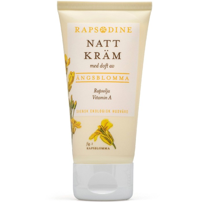Rapsodine nattkräm innehåller vitamin A och är en mjukgörande och näringsrik nattkräm för ansiktet. Krämen innehåller en hög andel ekologisk rapsolja med vitamin E och omegafettsyror, som mjukgör och tillför huden extra fukt och näring under natten.