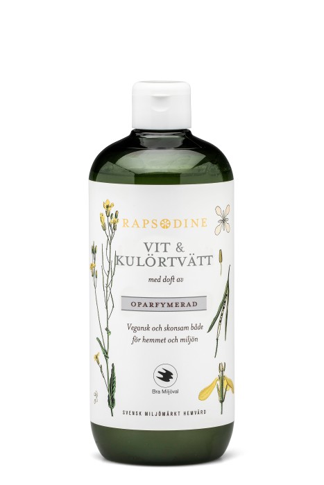Rapsodine Vit & Kulörtvätt är ett drygt och mycket skonsamt tvättmedel för alla sorters tvätt. Tvättmedlet innehåller rapssåpa och uppfyller krav på biologisk nedbrytbarhet. Oparfymerat.