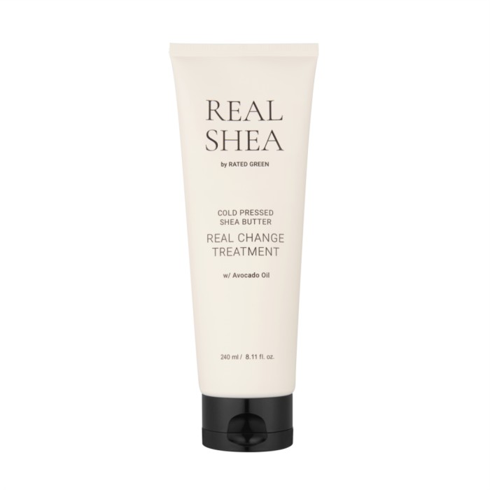 Cold Pressed Shea Butter Real Change Treatment är en hehandling som reparerar och vårdar frissigt hår. Rated Green Real Change Treatment ger protein (med bönextrakt), fukt (med sheasmör), och näring (med avokado) och hjälper till att reparera och vårda frissigt hår, så att håret känns mjukt och glansigt.