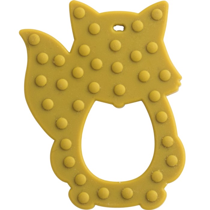 Gullig silikonbitleksak som är skön för barnet att bita i och lätt att greppa. Bitringen med sött räv-motiv har en mönstrad yta på baksidan som stimulerar ömma gommar när barnet får tänder. Bitringen rengörs med milt diskmedel i varmt vatten.