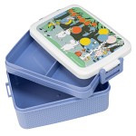 Praktisk lunchlåda med fint motiv från Mumin, en låda som säkert snabbt blir en favorit hemma - hos både stora och små. Lådan har en mellanbricka med två fack samt ett lock med knäppen. Du kan välja om du vill ha med avdelaren eller inte, och locket går att spänna i två olika lägen. Passar bra att använda när du ska ta med en matsäck, på pickniken eller för att förvara överbliven mat i kylskåpet. Lunchlådan är tillverkad i tålig polypropen. Kan användas i mikrovågsugn (30 sek 800W) och kan diskas i maskin 50°C. Mått: 8 x 18,5 x 12 cm.