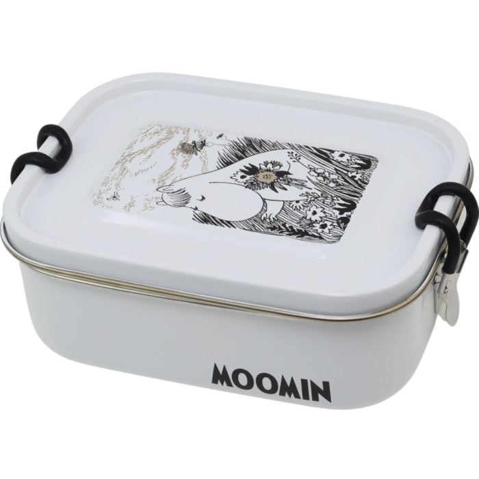 Fin och praktisk lunchlåda / förvaringslåda i rostfritt stål med Mumin-motiv. Locket öppnas och stängs enkelt med två sidolås. Perfekt att ta med på picknick och utflykt, men kan också användas som förvaring av t ex kritor och andra småsaker i barnrummet. Mått: 6,2 x 18 x 13,5 cm.