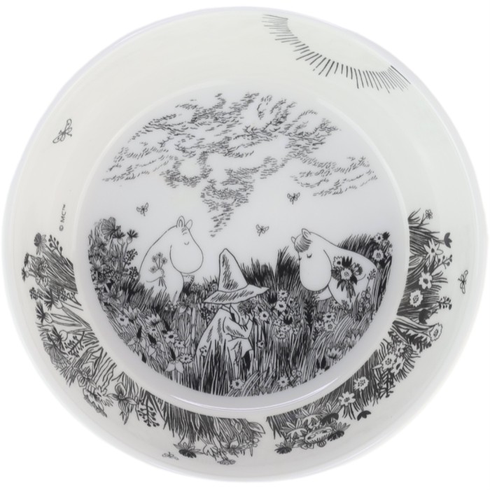 Mumin Graphic Stor skål från Rätt Start är en djup skål i reptålig melaminplast med Mumin-motiv. Mumin Graphic är en stilren serie i svart och vitt. Skålen är gjord av 100% melamin. Kan diskas i maskin i övre hyllan max 50 grader, men tål inte mikrovågsugn.