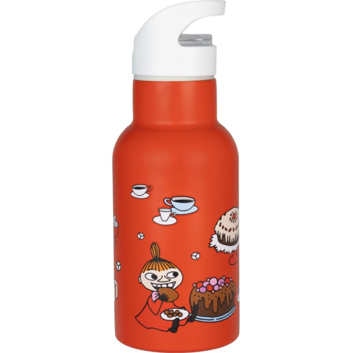 Mumin Lilla My Vattenflaska från Rätt Start är en flaska i högkvalitativt stål. Flaskan har en termofunktion som gör att vätskor kan hålla sig både varma och kalla ett litet tag. Inuti flaskan finns ett avtagbart sugrör i plast som gör att det kommer lagom mängd när man dricker. Flaskan är enkel att öppna och stänga.