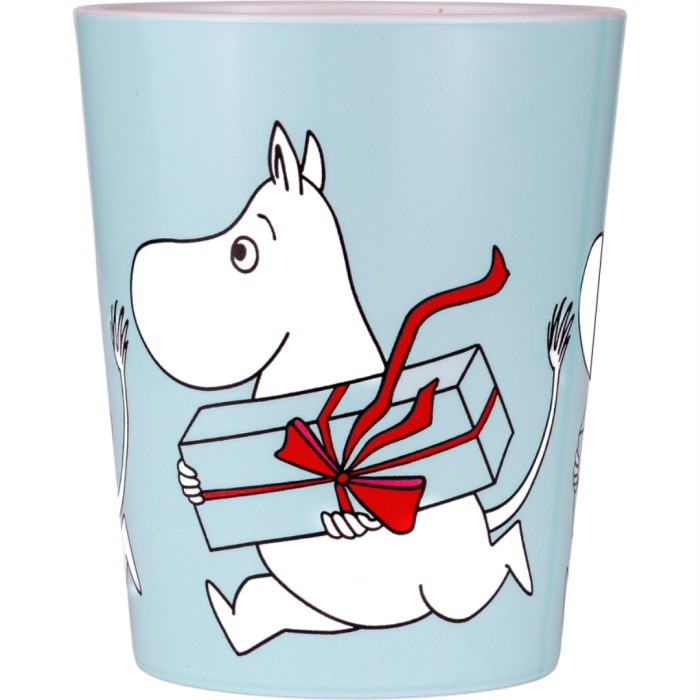 Tumblermugg från Rätt Start med motiv från Mumin-kollektionen Picknick, tillverkad i tåligt RPET-material. Muggen rymmer 200 ml.