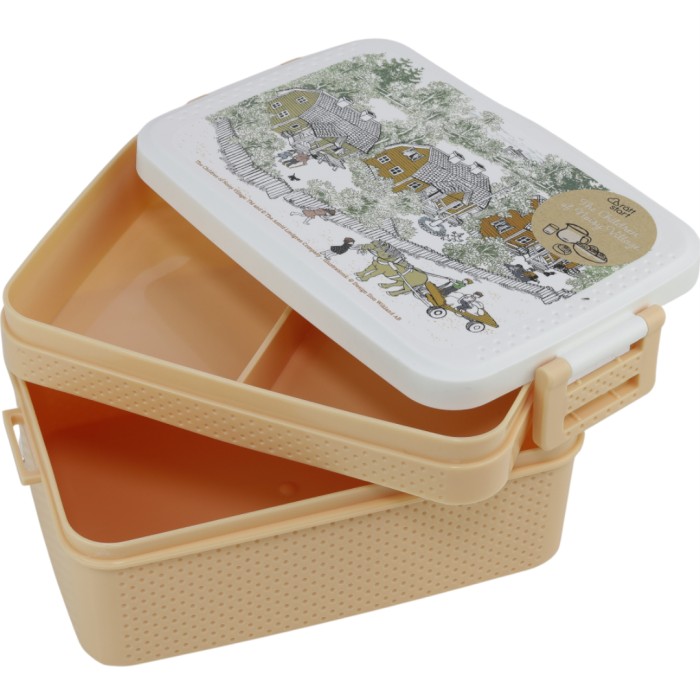 Fin och praktisk lunchlåda för barn med motiv från Barnen i Bullerbyn. Lunchlådan har en mellanbricka med två fack samt ett lock med knäppen. Du kan välja om du vill ha med avdelaren eller inte, locket går att spänna i två olika lägen.