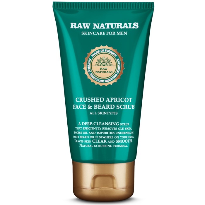 Raw Naturals Crushed Apricot Face & Beard Scrub är en skrubb för ansikte och skäggbotten som avlägsnar döda hudceller, smuts och hudflagor. Skrubben verkar djuprengörande på porerna, motverkar inåtväxande hårstrån och minskar rodnad och irritation.
