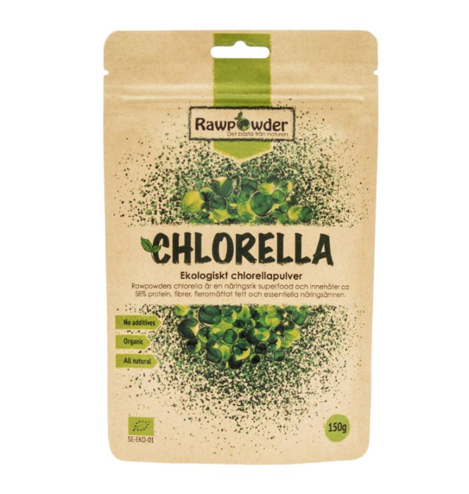 Chlorella är en färskvattenalg och är bland det mest näringsfulla du kan äta. Rawpowder Chlorellapulver innehåller nästan alla vitaminer och mineraler som behövs i en mänsklig diet. Bland annat innehåller Rawpowder Chlorellapulver en stor mängd av antioxidanten klorofyll, den är rik på protein och rik på enzymer såsom pepsin.
