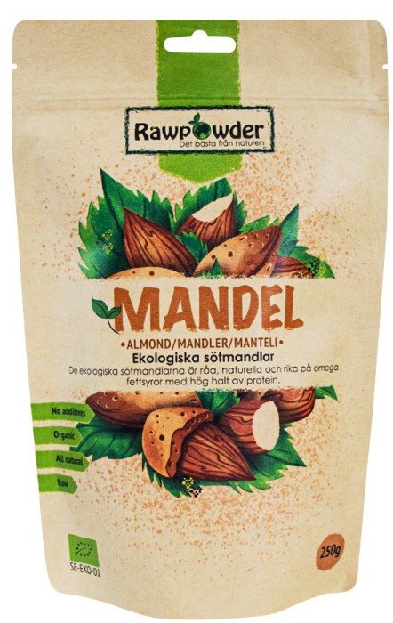 Sötmandlar är goda och knapriga och Rawpowders ekologiska sötmandlar är raw och naturella.