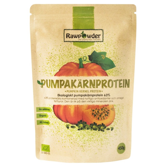 Rawpowders pumpakärnprotein är ett pulver gjort på stenmalda pumpakärnor. Ett naturligt proteintillskott på ca 63% och utan tillsatser. En proteinkälla som kanske passar för dig som är vegan.