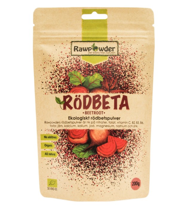 Rawpowder Rödbetspulver är gjort på torkad och mald ekologisk rödbeta och är en ren naturprodukt.