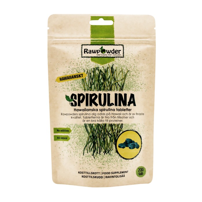 Spirulina är en blågrön mikroalg som odlas i specialbyggda sötvattenbassänger. Den får sin blågröna färg från klorofyll och fykocyanin. Algen innehåller över hundra näringsämnen, bland annat 18 aminosyror, 16 olika mineraler och 13 olika vitaminer. Den hawaiianska spirulinan anses vara av bästa kvalitet och det beror främst på klimatet och källvattnet man odlar spirulinan i.