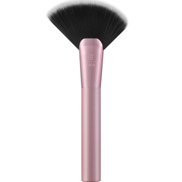 Extra Big Finishing Brush från Real Techniques har ett överdimensionerat, fläktformat borsthuvud som är 35% större än befintliga sminkborstar från Real Techniques. Med Extra Big Finishing Brush 454 kan du enkelt markera och framhäva dina kindben, käklinje och panna.
