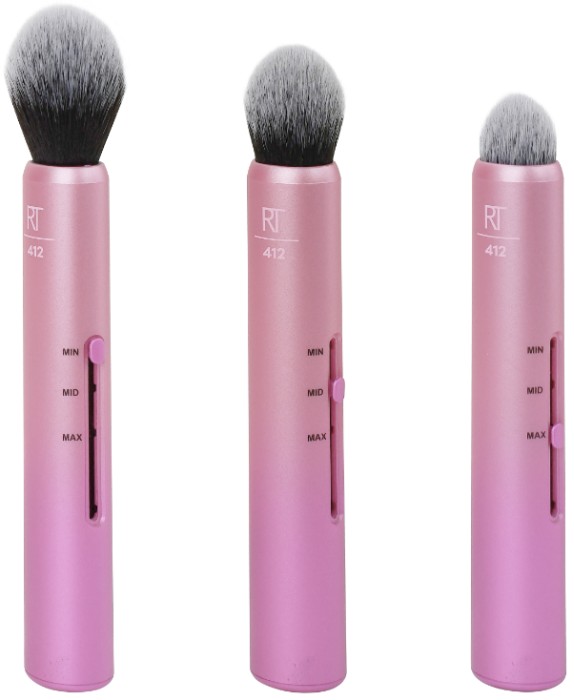 Real Techniques Custom Cheek är en 3-i-1 borste som gör att du kan välja täckningsgrad - från en naturlig look till ett mer heltäckande resultat - med ett enkelt klick på borsten. Borsten kan användas med krämrouge, puderrouge eller flytande rouge och highlighter.