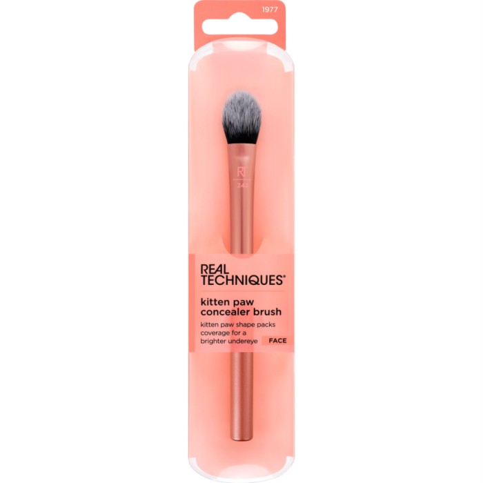 Real Techniques Kitten Paw Concealer Brush har mjuka syntetiska borststrån och används för att enkelt applicera makeup och hudvårdsprodukter. Använd Kitten Paw Concealer Brush för att applicera concealer och ögonkräm för en len och fin finish. Borsten har etappklippta borststrån och är perfekt fär applicering av concealer under t ex ögonen.