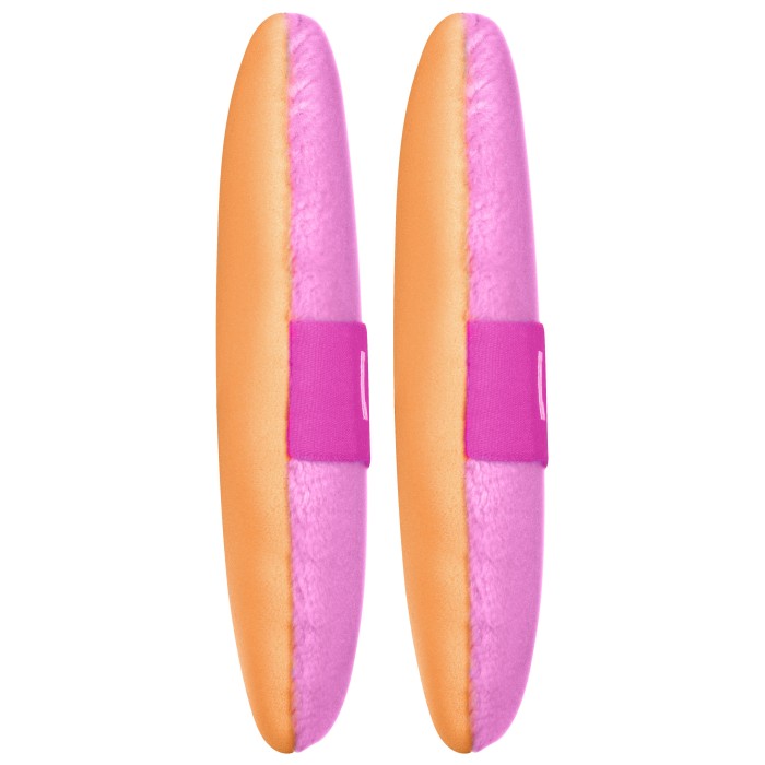 Powder Puffs rosa sida kan användas för touch-ups under dagen, med sina plyschfibrer som plockar upp och applicerar precis rätt mängd av alla slags puderprodukter för att skapa din bas eller fräscha upp din makeup. Den orange sidan är gjord av Miracle Complexion Sponge-material för att applicera flytande eller krämiga produkter på ett enkelt sätt. Båda sidorna av makeuppuffen fungerar bäst om de är torra.