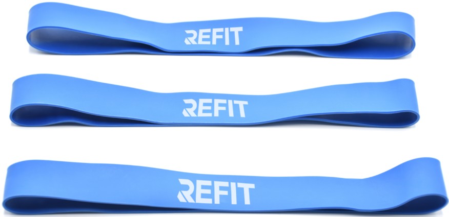 Refits Rubberband är litet och lätt och tar ingen plats. Tilverkad av ett flexibelt latexmaterial och finns i olika styrkor. Det blå gummibandet har ett hårt motstånd.