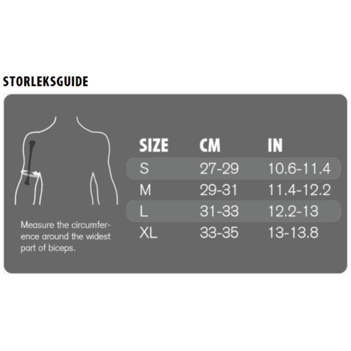 För att välja rätt storlek, mät omkretsen runt biceps där den är som bredast: