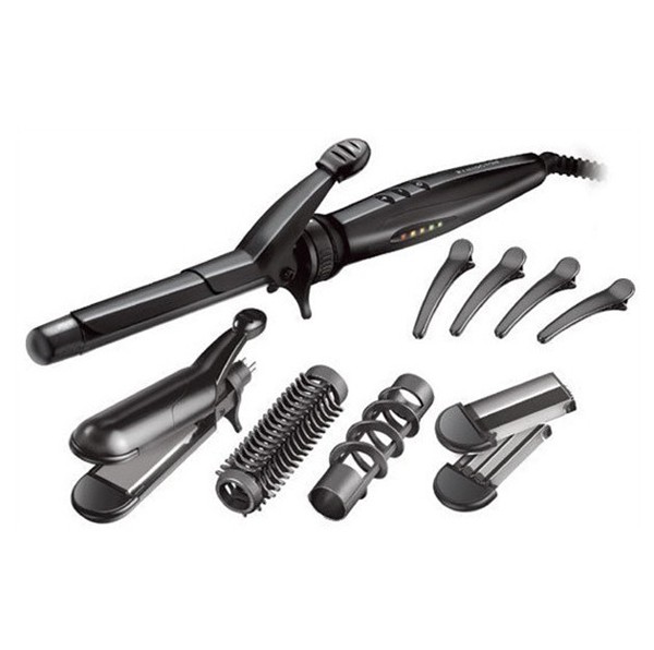 Remington S8670 Multi Styler använder ett klicksystem som gör att du enkelt kan byta mellan 5 olika redskap: locktång (19 mm), plattång, krustång värmeborste och spiraltång. Alla tillbehören har keramiska plattor för att vara skonsamma för håret.