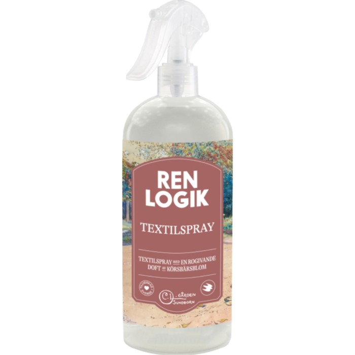Ren Logik Textilspray med doft av körsbärsblom är en spray som kan användas på dina textilier som kuddar, kläder, gardiner och plädar. Sprayen mjukgör och vårdar fibrerna och dämpar statisk elektricitet. Denna spray har en frisk doft av körsbärsblom. Tillverkad i Sverige. Vegansk, fri från färgämnen, märkt med Bra Miljöval och uppfyller därmed hårda krav på biologisk nedbrytbarhet.