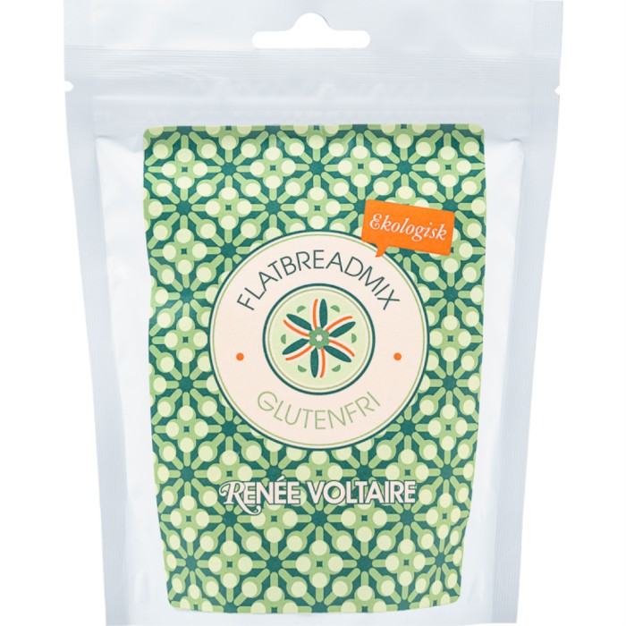 Renée Voltaire Flatbreadmix är en ekologisk, glutenfri och vegansk flatbreadmix gjord på bovete- och tapiokamjöl, och psyliumhusk samt en nypa salt. En mix som är handgjord av fina råvaror. Blandas enkelt med bara vatten, rapsolja, äppelcidervinäger, och toppas med dina favoriter som wrap eller till en gryta. Nygräddat på 30 minuter!
