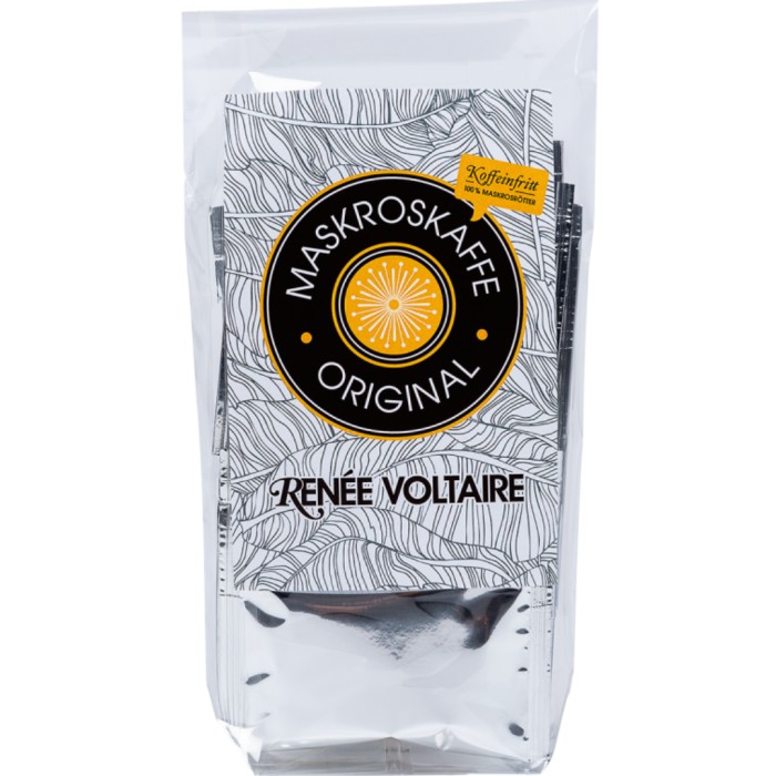 Renée Voltaire Maskroskaffe Original är ett kaffe gjort på maskrosens rötter, som rostats och malts till ett pulver. Maskroskaffe liknar vanligt kaffe i både smak och utseende, men är basiskt och fritt från koffein. Maskroskaffet kan även drickas som ett te. Portionsförpackat i tepåsar.