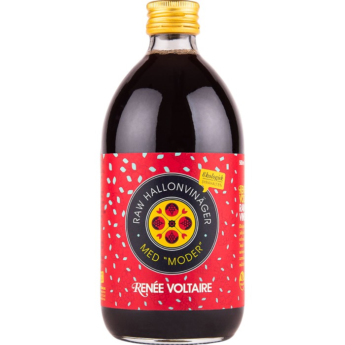 Renée Voltaire Raw Hallonvinäger med moder är gjord av ekologiska och fermenterade hallon som jästs på fat. Vinägern är raw, ofiltrerad, opastöriserad och med levande bakteriekultur kallad ”moder”. Drick den som en shot eller måltidsdryck eller späd ut i hett vatten och drick som en kopp te.