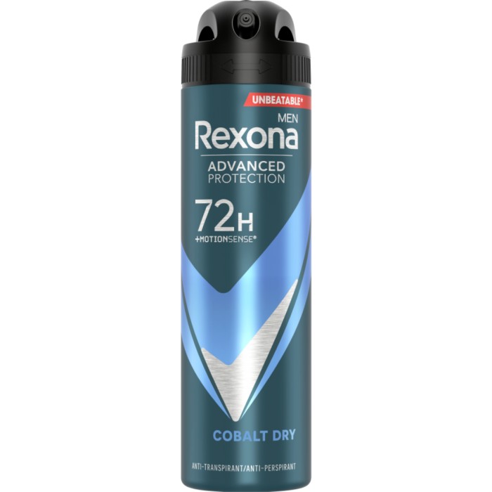 Rexona Men 72h Advanced Protection Cobalt Dry Antiperspirant deospray för män är en antiperspirant med en energigivande doft som ser till att du alltid känner dig ren och fräsch. Rexona Cobalt Dry ger ett effektivt och pålitligt skydd mot svett och obehaglig lukt i upp till 72 timmar.