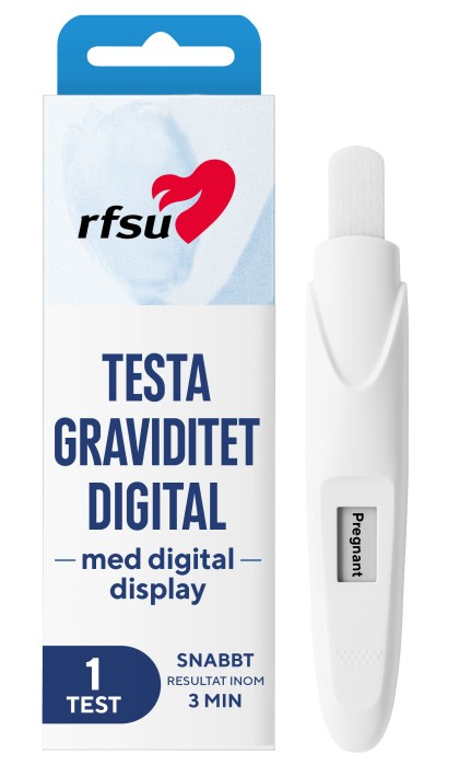 Med RFSU Graviditetstest Digital kan du snabbt och enkelt ta reda på om du är gravid. Det digitala testet ger ett tydligt provsvar med texten ”Pregnant” = Gravid eller ”Not Pregnant" = Inte gravid”. Du kan göra testet från och med den dag som du väntar din mens.