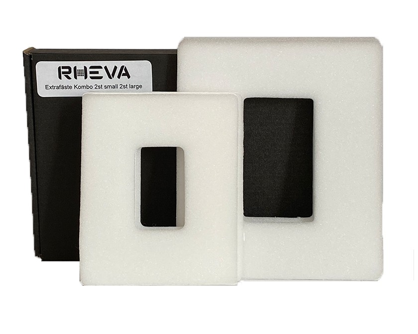 Förpackningen innehåller totalt 4 st extrafästen: 2 st i storlek 7x5 cm samt 2 st i storlek 10x7 cm. Passar till Rheva Kombo.