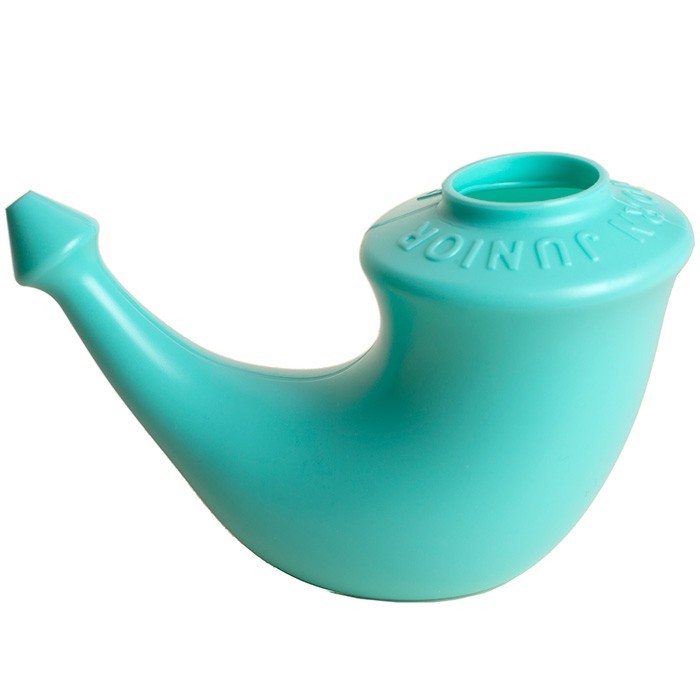 Rhino Horn Junior är en nässköljningskanna för barn 4 - 12 år. Kannan är lätt att hålla i och har en mindre pip och rymmer mindre saltvatten än vuxenkannan Rhino Horn (tidigare NasoKlar).