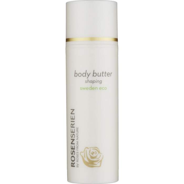 Rosenserien Shaping Body Butter är en intensivkräm för hud som behöver extra fukt och näring. Shaping Body Butter återfuktar huden effektivt samtidigt som den stramar upp och gör huden len. Hudkrämen innehåller parakrasse som har en dokumenterat uppstramande effekt och rödklöver som gör huden mjuk och smidig. Hudkrämen har en bas av ekologisk och rättvisemärkt aloevera-gel. Passar alla hudtyper, speciellt riktigt torr hud.