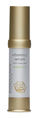 Rosenserien Vitamin C Serum with Rose Root är ett ansiktsserum med C-vitamin och rosenrot, ett djupverkande serum som kan användas som komplement till Rosenseriens fuktkräm eller Night Care Intense. Serumet ger huden en energikick med sitt stabiliserade C-vitamin och den vitaliserande rosenroten. Hjälper huden att återfå och bibehålla sin spänst och lyster. Kan ha en blekande effekt på pigmentfläckar, inga snabba resultat.