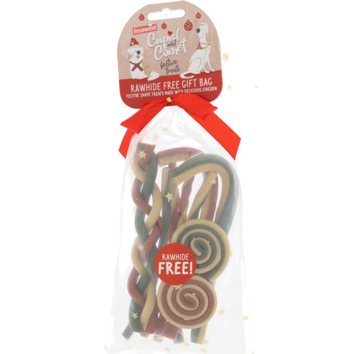 Rosewood Bumper Gift Bag är en julklappspåse till hunden, med innehåll utan råhud av kyckling och sötpotatis. Denna presentpåse är kanske den perfekta godbiten för din hund i jul.