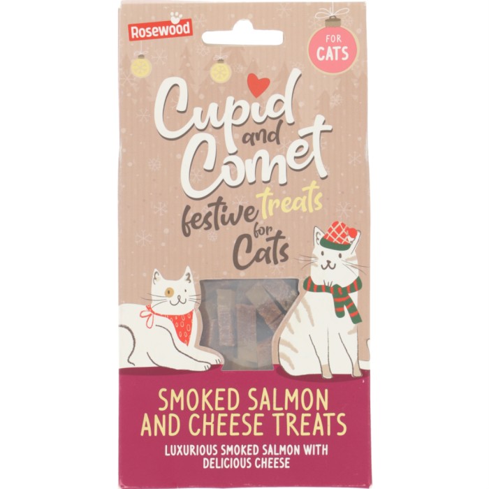 Rosewood Smoked Salmon & Cheese Treats är kattgodis i form av läcker bitar av rökt lax och ost, förpackade i en festlig presentask. Ingen tillsatt salt. Låg fetthalt.