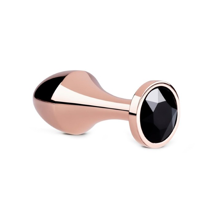 Rosy Gold Butt Plug är en analplugg i metall med en geometrisk design och färgen rosé-guld, med en svart kristall i ena änden. Rosy Gold analplugg är unisex och kan användas under samlag, förspel eller vid stimulans av andra erogena zoner. Rosy Gold Butt Plug är tillverkad i metall och kan både värmas upp och kylas ned. Enkel att rengöra och kan användas med alla typer av glidmedel.
