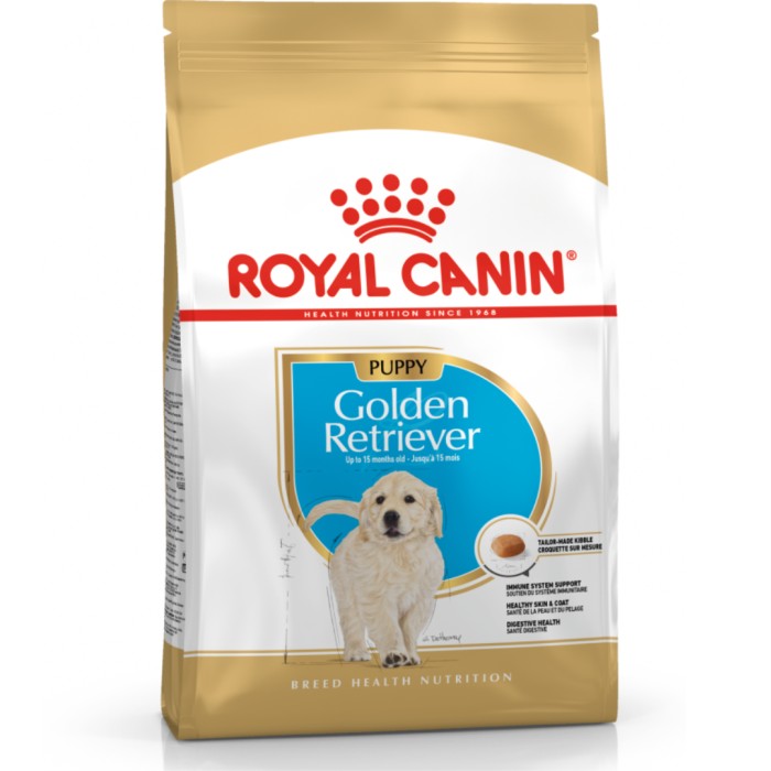 ROYAL CANIN® Golden Retriever-torrfoder är lämpligt för valpar upp till 15 månader gamla och är särskilt utvecklat med din unga golden retrievers alla näringsbehov i åtanke. Under denna viktiga tillväxtfas utvecklas din valps immunsystem – det är därför fodret innehåller antioxidanter för att stödja din valps immunförsvar och bibehålla en optimal hälsa när den växer. Dess specifika sammansättning hjälper också till att bibehålla hälsan hos din unga retrievers hud och päls. Fodret har berikats med omega 3-fettsyrorna EPA och DHA, samt boragoolja som bidrar till att stärka hudens skyddande roll.