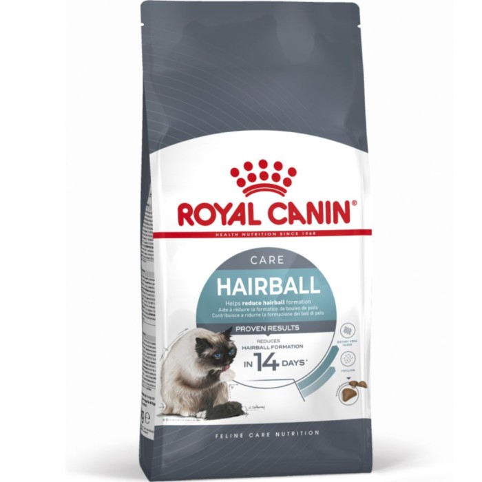 Med en specifik blandning av naturliga kostfibrer (inklusive psyllium) bidrar ROYAL CANIN® Hairball Care till en naturlig stimulans av tarmpassagen. Detta kan innebära att mer hår som din katt sväljer komma ut via avföringen istället för att byggas upp i magen så att katten kräks upp det.