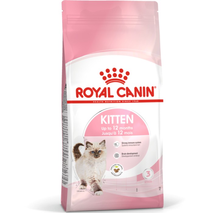 ROYAL CANIN® Kitten är särskilt utvecklat för att stödja näringsbehovet hos kattungar som går in i tillväxtens ”konsolideringsfas”. Torrfodrets sammansättning är anpassat för kattungar i åldern 4 till 12 månader medan de går igenom en period av fysiska och beteendemässiga förändringar. Detta för kattungar skräddarsydda foder, innehåller anpassade nivåer av proteiner, mineraler och vitaminer för att tillgodose din kattunges energibehov samt stödja växande skelett och muskler. Det innehåller även näringsämnen som vitamin C och E som kan bidra till att stödja utvecklingen av ett hälsosamt immunförsvar hos kattungen.