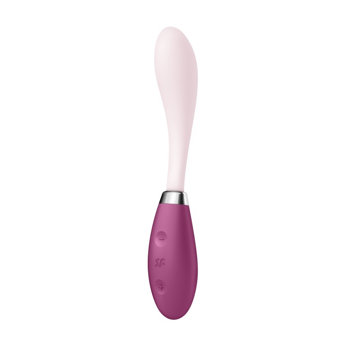 Satisfyer G-Spot Flex är en flexibel vibrator där du inte behöver byta vibratorer fram och tillbaka, eftersom den går att använda både som G-punkts- och rabbitvibrator. G-punkten stimuleras samtidigt som det omfattande skaftet med en rundad spets penetrerar. Stimuleringsvinkeln kan optimeras efter dina behov, tack vare enhetens böjbarhet. Om du vill höja stämningen kan vibratorn böjas till en rabbit, vilket stimulerar klitoris och din G-punkt synkroniserat. De 12 vibrationsprogrammen och två kraftfulla motorer ger en extra dimension till din njutning. En fint designad vibrator med elegant färg och metalliska handtag. Den flexibla vibratorn har rundade hörn, och en yta av silkeslen silikon. Vattentät (IPX7) finish vilket gör att den kan användas i duschen, badkaret eller andra fuktiga utrymmen.