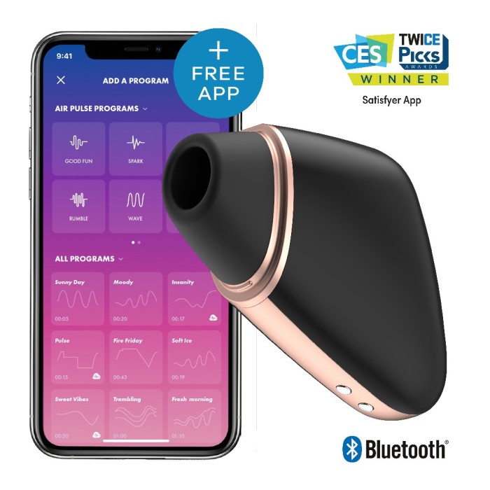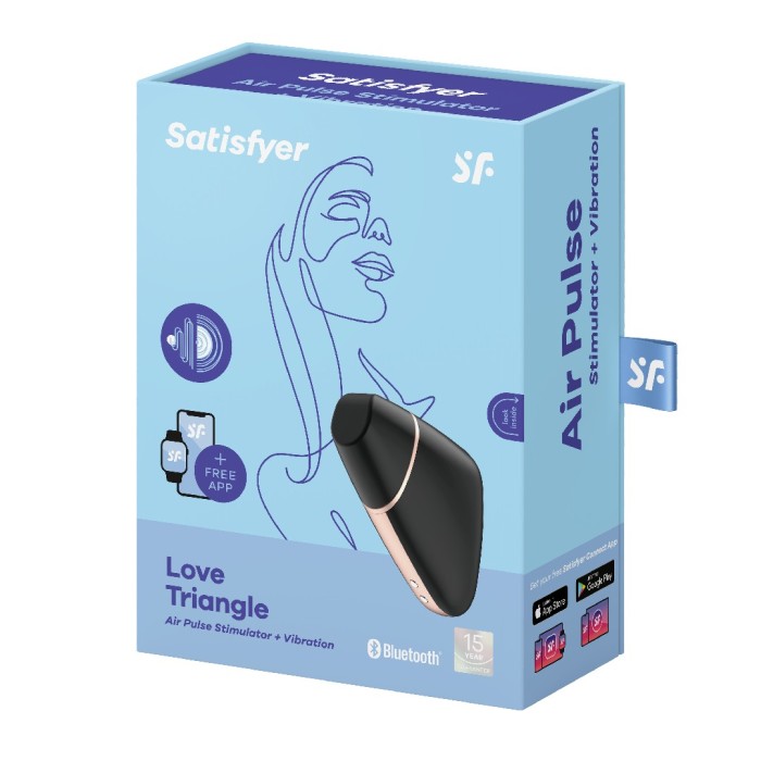 Satisfyer Love Triangle är en stilren klitorisvibrator som kombinerar Air-Pulse Technology med djupa vibrationer och tryckvågor. Love Triangle är kompatibel med Satisfyers App Connect som är gratis och tillgänglig för iOS och Android. Med Satisfyers App Connect finns möjlighet att skräddarsy en mängd egna vibrationsprogram och låta telefonen bli din fjärrkontroll. Vill du hellre använda vibratorn manuellt, starta den med ON/OFF-knappen och växla mellan de inbyggda pulsations- och vibrationsmönstren. (11 program med tryckvågor och 10 vibrationslägen.) Love Triangles smidiga silikonhuvud är tillverkat av 100 % lent och hygieniskt kroppssäkert silikon. Silikonhuvudet stimulerar klitoris på ett beröringsfritt sätt med pulseringsstimulation. Den har en prestanda som kan vara effektiv för de som upplever det svårt att uppnå orgasm.