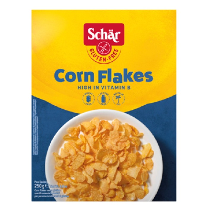 Schär Corn Flakes är glutenfria flingor som är berikade med 8 vitaminer. Passar perfekt som frukost eller mellanmål. Blanda med mjölk eller yoghurt, och kanske toppa med färsk frukt. Innehåller fibrer.