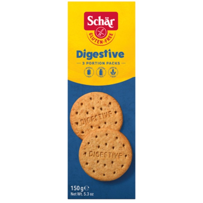 Schär Digestive är ett sprött, glutenfritt digestivekex - en klassiker som passar till mycket: till ostbrickan, på utflykten, till fikat eller som bas för en cheesecake.