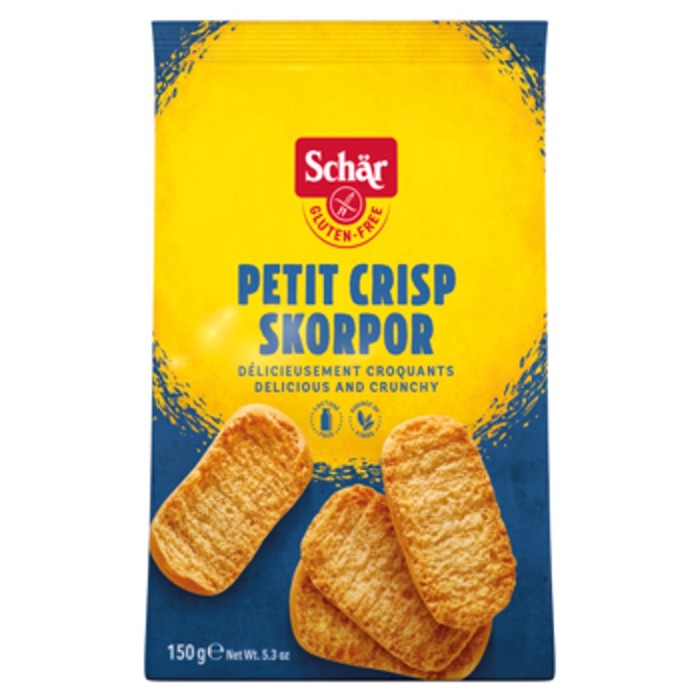 Schär Petit Crisp är glutenfria knapriga skorpor. De små rostade brödskivorna passar bra som förrätt, som komplement till en måltid eller som en söt variant till frukost.