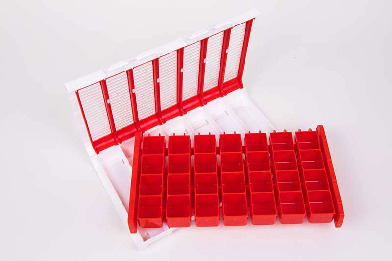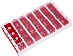 Schine Pill Box är en praktisk förvaring för tabletter. Öppnas och stängs smidigt med jalusiluckor. Pill Box Large har 7 x 4 fack avsedda för en veckas dosering. Dagarna är tydligt markerade och de fyra facken för varje dag är numrerade från 1–4.