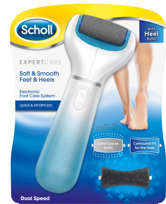 Scholl Electronic Foot Care SystemScholls elektriska fotfil hjälper dig att snabbt och bekvämt ta bort hård hud och hälsprickor på fötterna och hälarna. Passar perfekt i handen och är lätt och bekväm att använda då den är sladdlös. Låt fotfilen göra jobbet åt dig med sin roterande slipyta som har två olika hastigheter att välja mellan för bättre anpassning till dina behov. Filen som sitter på har extra grov struktur (extra course) och den medföljande refillen är speciellt formad för hälarna med normal grovlek på slipytan (regular course). Båda dessa refiller kan även köpas separat då det rekommenderas att byta ut filarna med jämna mellanrum för bästa effekt. Fotfilen kan användas på både våt och torr hud.