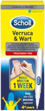 Vårtbehandlingspennan innehåller en gel med ingrediensen TCA-Active™ som gör att den infekterade huden faller av. Förhårdnaden, och viruset som orskar förhårdnaden, försvinner och ersätts av ny, frisk hud. Pennan har en precisiontopp för exakt applicering. Gelen innehåller ett blått färgämne för att underlätta en exakt applicering och förhindra att gelen hamnar på frisk hud av misstag. Scholl Vårtpenna ger synligt resultat redan efter en vecka.