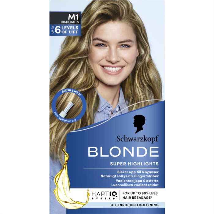 Schwarzkopf Blonde Highlights är en oljeberikad blekning för håret. Blonde Highlights innehåller skyddande "anti-damage-komplex" och har en oljeberikad formulering för att ge håret en mjuk känsla. Blonde Highlights bleker håret upp till sex nyanser, och innehåller ingredienser som motverkar gult hår.