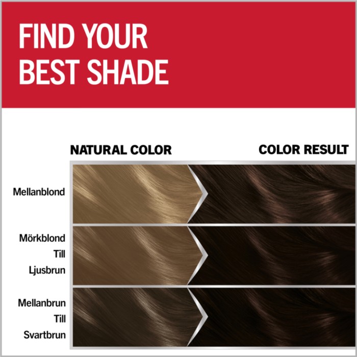 Ingredients: Color Creme/Värivoide: Aqua (Water, Eau) · Cetearyl Alcohol · Coconut Alcohol · Ammonium Hydroxide · Sodium Laureth Sulfate · Isostearic Acid · Toluene-2,5-Diamine Sulfate · Potassium Hydroxide · Sodium Lauryl Glucose Carboxylate · Dimethicone · Bis-Diisopropanolamino-PG-Propyl Dimethicone/Bis-Isobutyl PEG-14 Copolymer · Lauryl Glucoside · Resorcinol · Myristic Acid · Ceteareth-20 · Parfum (Fragrance) · Sodium Sulfite · Ceteareth-12 · Silica · Sodium Chloride · Prunus Armeniaca (Apricot) Kernel Oil · Sodium Silicate · m-Aminophenol · Citric Acid · Etidronic Acid · Butyloctanol · Polysorbate 20 · Linalool · Ascorbic Acid · 6-Methoxy- 2-Methylamino-3-Aminopyridine HCl · Citronellol · Sorbic Acid · Lactic Acid · Sodium Benzoate · Benzyl Alcohol Utvecklings-/Udviklingsemulsion/Kehite-emulsio: Aqua (Water, Eau) · Hydrogen Peroxide · Cetearyl Alcohol · PEG-40 Castor Oil · Disodium Pyrophosphate · Sodium Cetearyl Sulfate · Disodium EDTA · Sodium Benzoate · Phosphoric Acid Care Conditioner/Hoitoaine: Aqua (Water, Eau) · Cetearyl Alcohol · Glycerin · Distearoylethyl Dimonium Chloride · Coco-Caprylate · Sorbitan Caprylate · Guar Hydroxypropyltrimonium Chloride · Olea Europaea (Olive) Fruit Oil · Benzyl Alcohol · Betaine · Arachidyl Alcohol · Parfum (Fragrance) · Behenyl Alcohol · Arachidyl Glucoside · Dehydroacetic Acid · Limonene · Citric Acid · Linalool · Sodium Hydroxide